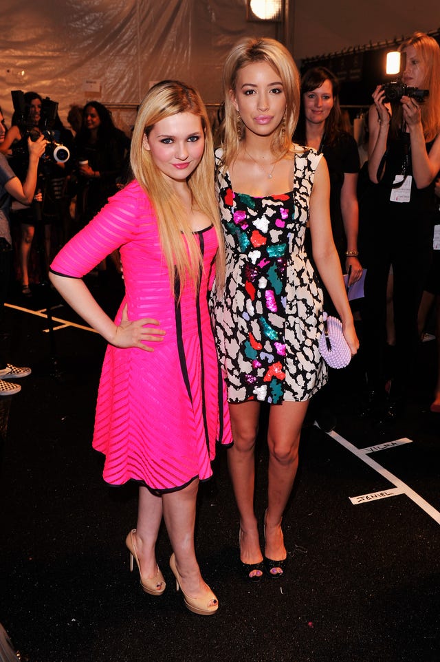 Abigail Breslin poses with Twilight actress Christian Serratos backstage at the