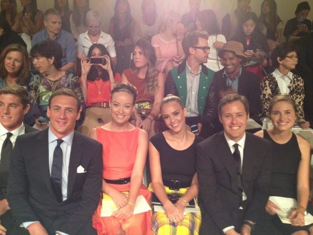 Olympian Ryan Lochte, The Words star Olivia Wilde, Little Fockers star Jessica Alba, David Lauren and Lauren Bush were all snapped at the Ralph Lauren Runway show on Sept. 13, 2012 in NYC. The brand's official Twitter posted this pic with the following caption: "@ryanlochte @oliviawilde @jessicaalba David Lauren & @LaurenBushTweet sitting front row #nyfw."