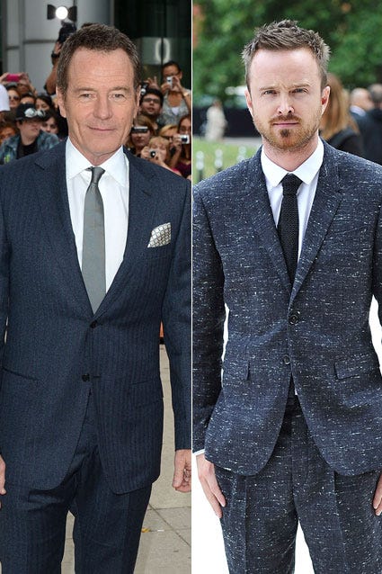 Best Drama Actor nominee Bryan Cranston as Walter White in Breaking Bad vs. Best Supporting Drama Actor nominee Aaron Paul as Jesse Pinkman in Breaking Bad