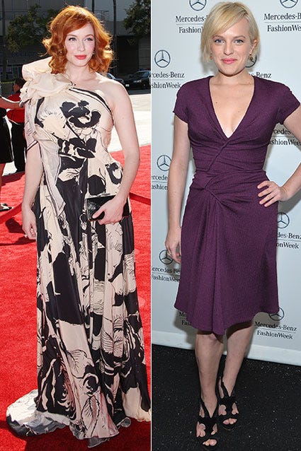 Best Supporting Drama Actress nominee Christina Hendricks as Joan Holloway Harris in Mad Men vs. Best Drama Actress nominee Elisabeth Moss as Peggy Olson in Mad Men