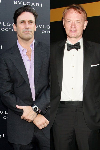 Best Drama Actor nominee Jon Hamm as Don Draper in Mad Men vs. Best Supporting Actor nominee Jared Harris as Lane Pryce in Mad Men