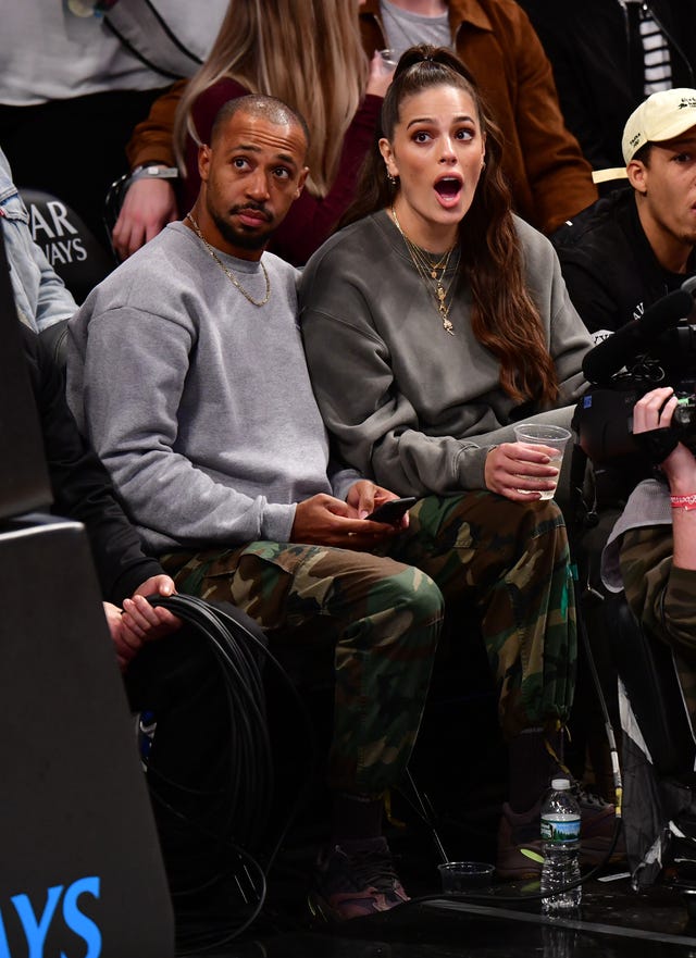 The couple that watches basketball together, stays together! The model and her beau both donned gray crewneck sweatshirts and gold chains as they watched the Brooklyn Nets take on the Houston Rockets at the Barclays Center in Brooklyn, New York, on Nov. 2.