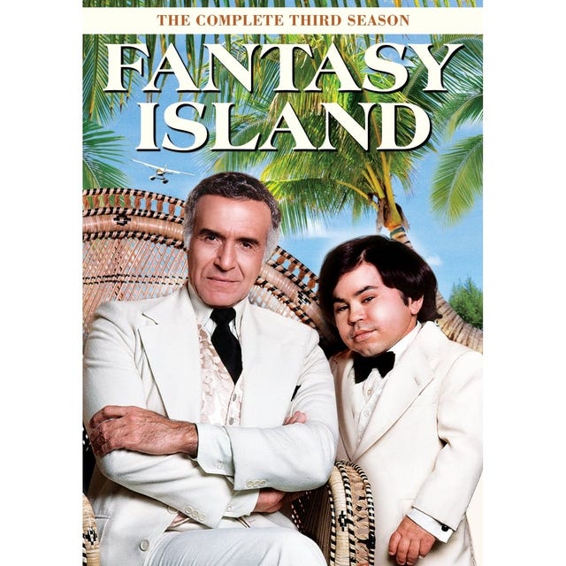 Da plane! Da plane! Fantasy Island: The Complete Third Season finds favorite wish-fulfilling resort director Mr. Roarke (Ricardo Montalban) and his energetic sidekick Tattoo (Herve Villechaize) granting fantasies to such late '70s celebrities as Don Adams, Sonny Bono, David Cassidy, Joan Collins, Bob Denver, Annette Funicello, Robert Goulet, Peter Graves, Roddy McDowall, Leslie Nielsen, Doris Roberts, Dick Sargent, Abe Vigoda and many more!