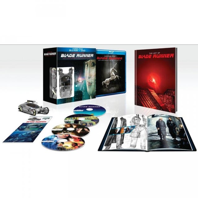 To commemorate the 30th Anniversary of one of the all-time great sci-fi films in cinema history, Ridley Scott's Blade Runner has been repackaged with the ultimate Collector's Edition, featuring a beautiful new commemorative 4-Disc Blu-ray & DVD Combo Pack with an Ultra Violet copy of The Final Cut feature. The other four versions of the film -- the 1992 Director's Cut, Domestic and International Theatrical versions, and the rare Workprint feature version – are included in the set alongside a 72-page production art book containing newly discovered art; never-before-seen production photos with more than 1,000 archival images; a motion lenticular card and a collectible Spinner car replica from an official concept sketch by Blade Runner's visual futurist Syd Mead.