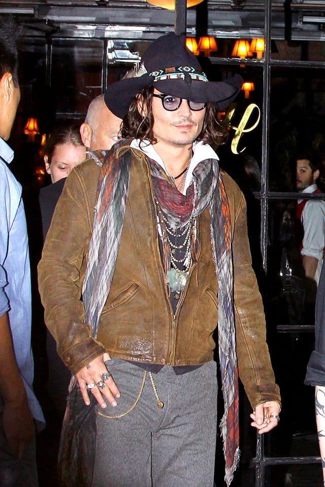 On September 23, Johnny Depp is snapped while leaving New York's Bowery Hotel. Do you wish that Depp would give up his hobo-meets-cowboy style, or does anything he wears beguile?
