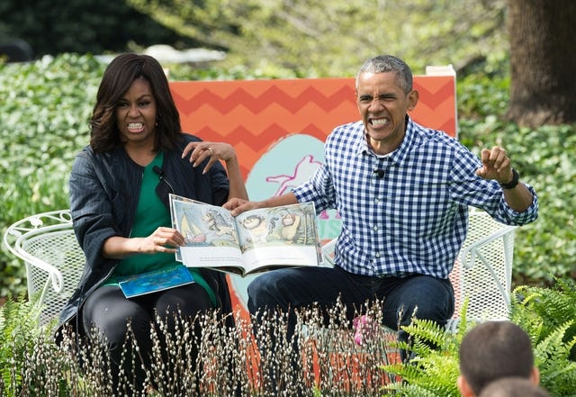 The Obamas got animated as they read Where the Wild Things Are to children attending the annual Easter Egg Roll at the White House in March 2016.