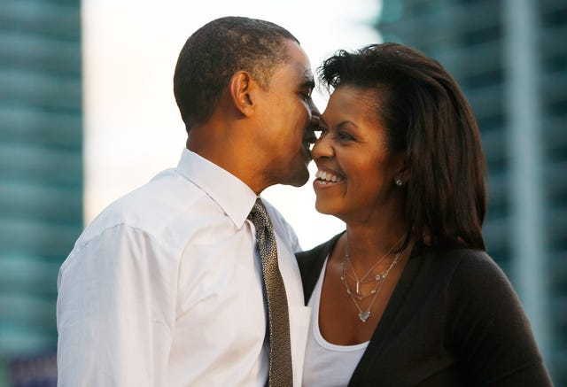 While still the Democratic presidential candidate, Barack gave his wife a playful kiss as they toured the Iowa State Fair in August 2007.