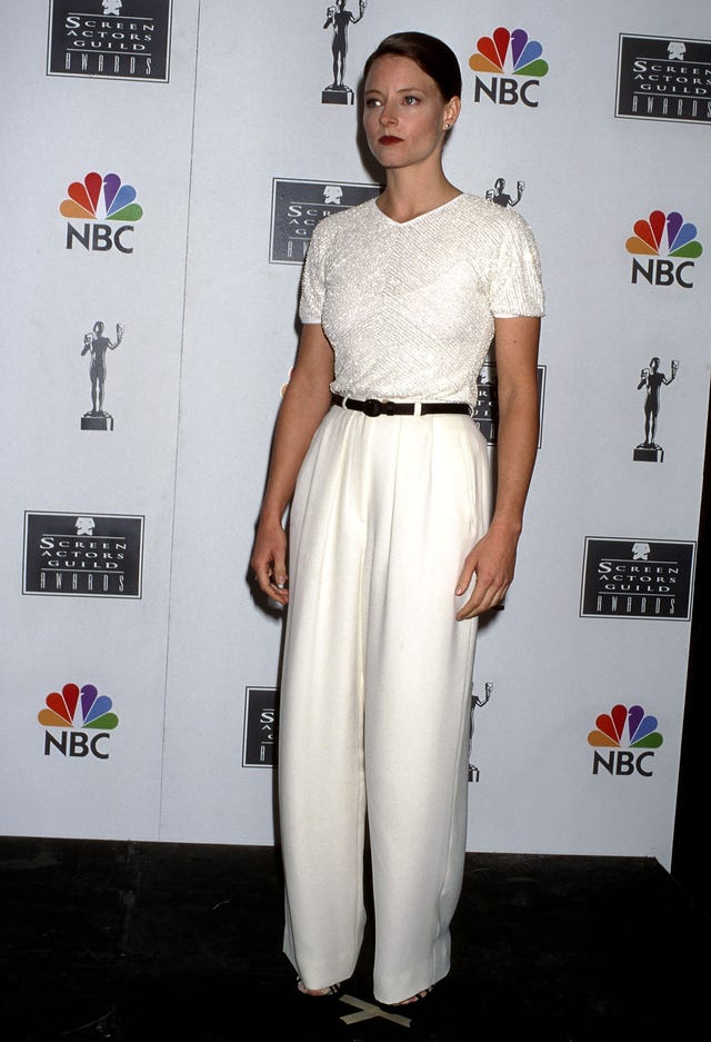 At the second-ever SAG Awards in 1996, Foster turned red carpet awards style on its head with a white shirt and trousers accented with a black belt and strappy sandals.