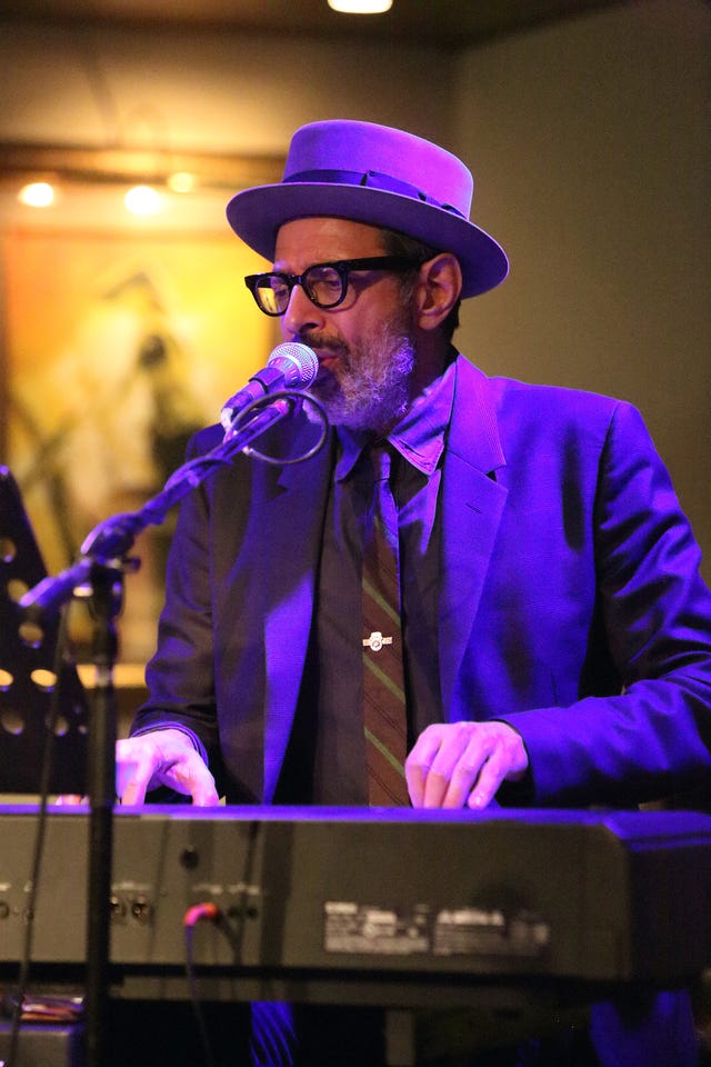 Jeff Goldblum performed live with his Mildred Snitzer Orchestra jazz band at at Crustacean Beverly Hills.
