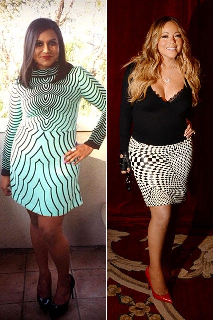 This new trend is pretty trippy. On June 9, 2014, both Mariah Carey and Mindy Kaling stepped out wearing psychedelic styles. The Mindy Project actress showed up to the FOX Girls Night Out event wearing a Marc by Marc Jacobs getup that she called her Mad Men "Megan Draper dress." Meanwhile, Mariah chose a sexy psychedelic skirt (and a cleavage-baring top) for her appearance at the launch of her Go N'Syde bottle Butterfly in New York City. Is this trend groovy?