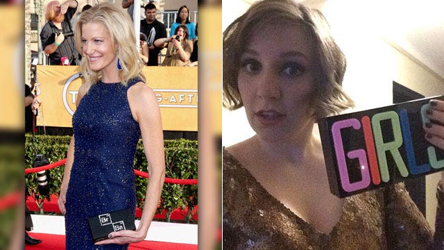 Anna Gunn showed some love for her show Breaking Bad with this adorable black clutch emblazoned with the "Breaking Bag" logo with the elemental symbols "Br" and "Ba" at the 2014 SAG Awards on January 18, 2014 in Los Angeles, while Lena Dunham proudly showed off her Charlotte Olympia Girls clutch on Instagram on April 7. "My first excuse to carry my @charlotte_olympia clutch in public! To the very inspiring @pointfoundation honors. I save my sequins for when I know the gay boys will be out #traffickinginstereotypes," she wrote.