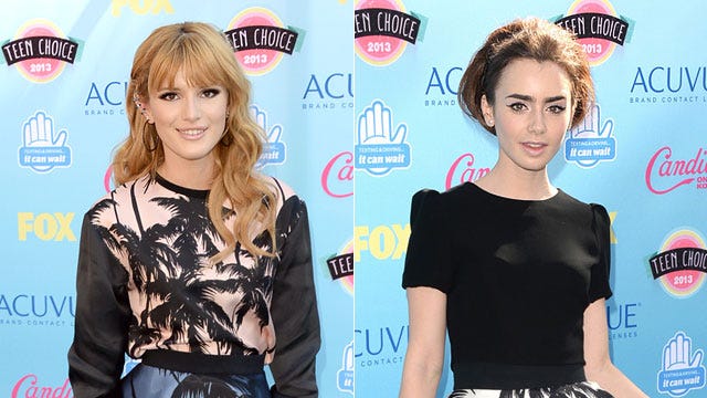 Palm tree print is all the rage this summer, with both teen queen Bella Thorne and The Mortal Instruments star Lily Collins sporting the tropical style at the 2013 Teen Choice Awards on August 11, 2013 in Universal City, Calif.