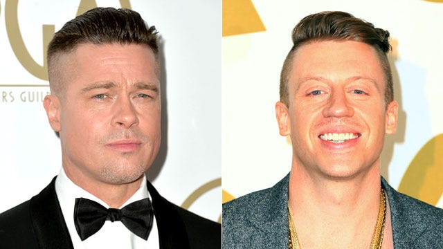 Brad Pitt seems to be taking hair tips from breakout rapper Macklemore. Both men are sporting undercuts these days, but Pitt says this style is only for a movie.