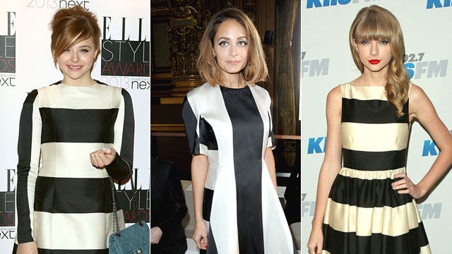 Whether they're vertical or horizontal, black-and-white stripes are back! Chloe Moretz and Taylor Swift recently sported the retro look -- Chloe in Stella McCartney at the 2013 Elle Style Awards and Taylor in Kate Spade at KIISFM's Jingle Ball -- with Nicole Richie being the latest fashionista to sport the playful trend at the Stella McCartney Fall/Winter 2013 Ready-to-Wear show at Paris Fashion Week.