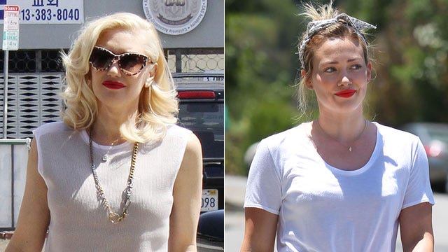 Both Gwen Stefani and Hilary Duff recently brought back the '90s, rocking turned down overalls out and about in Los Angeles. Gwen sported a darker jean on May 30, 2014, while Hilary chose a grey color on June 3.