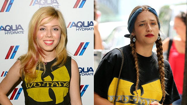 Guess good music never dies. Nickelodeon star Jennette McCurdy raised a couple of eyebrows when she sported a Wu-Tang Clan muscle tee at the Bruno Mars concert in Los Angeles on July 27, 2013, and just days later Jemima Kirke was also spotted representing the legendary rap group in their signature black-and-yellow tee filming a Girls scene in New York City on July 31.