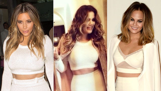Cropped white ensembles are making a comeback thanks to a pair of Kardashian sisters and supermodel Chrissy Teigen, who all recently sported the hard-to-pull-off look!
