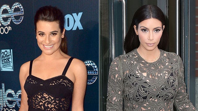 Both Lea Michele and Kim Kardashian weren't afraid to let their underwear show recently, sporting completely see-through dresses! Lea wore this daring black Milly dress to the Glee 100th Episode Celebration in Los Angeles on March 18, 2014, while Kim sported the hard-to-pull-off trend with this lacy green number during her appearance on Late Night with Seth Meyers on March 25, 2014 in York City.