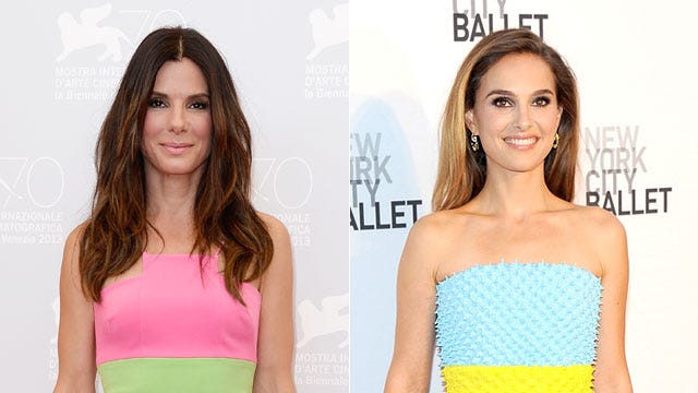 Tri-colored dresses are currently all the rage amongst Hollywood A-listers, with Sandra Bullock sporting a pink, green and orange Alex Perry dress at the Venice Film Festival supporting her film Gravity on August 28, 2013, and Natalie Portman making a rare appearance at the New York City Ballet 2013 Fall Gala in a baby blue, lime and black Christian Dior Couture dress on September 19, 2013.