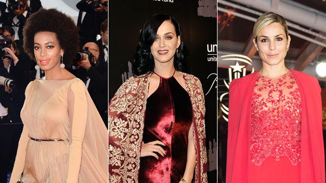 Solange Knowles made a splash at The Great Gatsby premiere at the 66th Annual Cannes Film Festival on May 15, 2013, sporting a nude Stéphane Rolland gown complete with a flowing cape, while Katy Perry rocked a more goth look in this red velvet Naeem Khan halter dress at the 9th annual UNICEF Snowflake Ball in New York City on December 3. Noomi Rapace was the last of the bunch in this bright red Elie Saab caped-gown, dazzling onlookers at the 13th Marrakech International Film Festival on December 5 in Morocco.