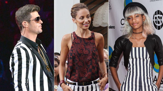 Robin Thicke certainly got a lot of attention for his black-and-white striped suit reminiscent of Beetlejuice during his now infamous Blurred Lines performance at the 2013 MTV Video Music Awards, but he's hardly the first celeb to rock the bold look.