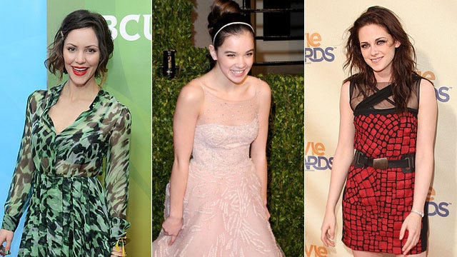 Katharine McPhee toughened up her printed green mini dress with a fierce pair of black studded sneakers at Sunday's TCA red carpet in Pasadena, California, solidifying that sneakers with dresses is a celeb style here to stay! Check out Hailee Steinfeld at last year's Oscars pairing her sweet pink Marchesa ball gown with red Chuck Taylors, and of course -- the queen of the sassy style herself -- Kristen Stewart rocking her signature beat-up black Chucks with a red and black Yigal Azrouël dress at the MTV Movie Awards in 2009. Click to see more of the latest celebrity trends!