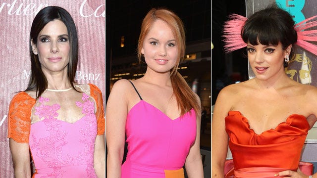 Looks like pink and orange is the new color scheme to take over the red carpet! Sandra Bullock glowed in this bright Alex Perry dress at the 25th Annual Palm Springs International Film Festival Awards Gala on January 4, 2014 in Palm Springs, Calif., while Disney star Debby Ryan looked fresh-faced at the Los Angeles That Awkward Moment premiere in this Osman dress on January 27. Lastly, Lily Allen sported the surprising color combo with this Vivienne Westwood gown at the 2014 BAFTAs on February 16 in London.