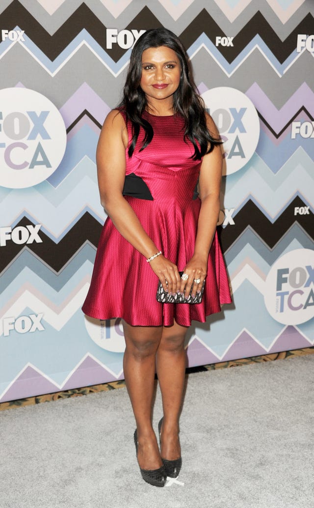 Mindy Kaling showed off her feminine style in this raspberry Lela Rose dress.