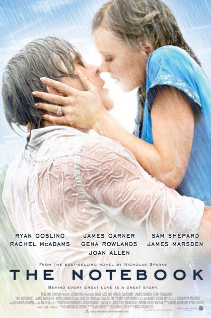 Mandy Moore and Shane West got close in the poster for this 2002 adaptation and so did the camera, introducing the extreme close-up into Sparks' poster repertoire.