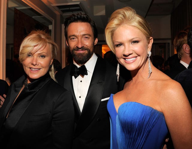 Hugh Jackman and his wife Deborra-Lee Furness pose with Nancy at last night's 2013 Vanity Fair Oscar Party the at the Sunset Tower Hotel in Hollywood.