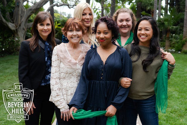 ET got much of the beloved cast together to celebrate the 30th anniversary of the comedy classic, which hit theaters in March 1989. Shelley Long (Phyllis Nefler), Tori Spelling (Jamie), Heather Hopper (Tessa DiBlasio), Aquilina Soriano (Lily Marcigan), Tasha Scott (Jasmine Shakar), Kellie Martin (Emily Coleman), Betty Thomas (Velda Plendor) and Dinah Lacey (Cleo Plendor) reunited at the iconic Beverly Hills Hotel. Three decades after Phyllis became an unconventional den mother to the daughters of movie stars, boxers, romance novelists and plastic surgeons, the castmates excitedly recounted plot points from the movie and spontaneously broke into song like they were reminiscing about their own summer camp -- which, in a sense, it was. (The film also featured Carla Gugino, Ami Foster and Emily Schulman, all of whom were unable to attend the reunion but sent video greets for their castmates, as well as child star-turned-rock star Jenny Lewis.)