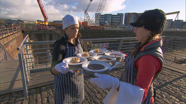 The roller derby moms have to serve up the equivalent to the last meal served to first-class passengers on the Titanic.