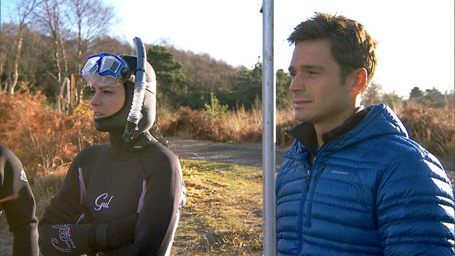 First up, Katie and Max look dismayed facing the bog snorkeling challenge.