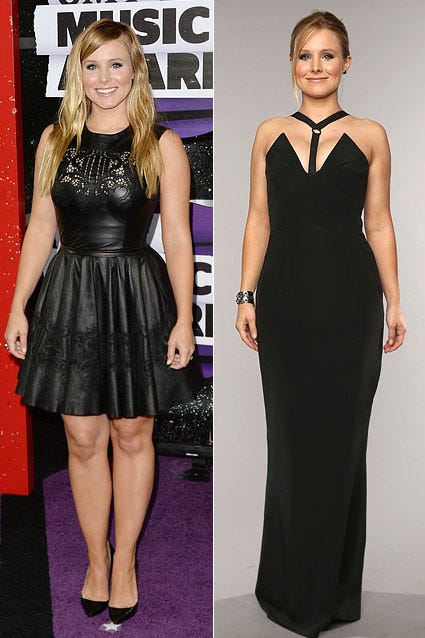 Host Kristen Bell didn't disappoint in a leather Zuhair Murad dress, before switching it up in a black cleavage-baring floor-length gown.