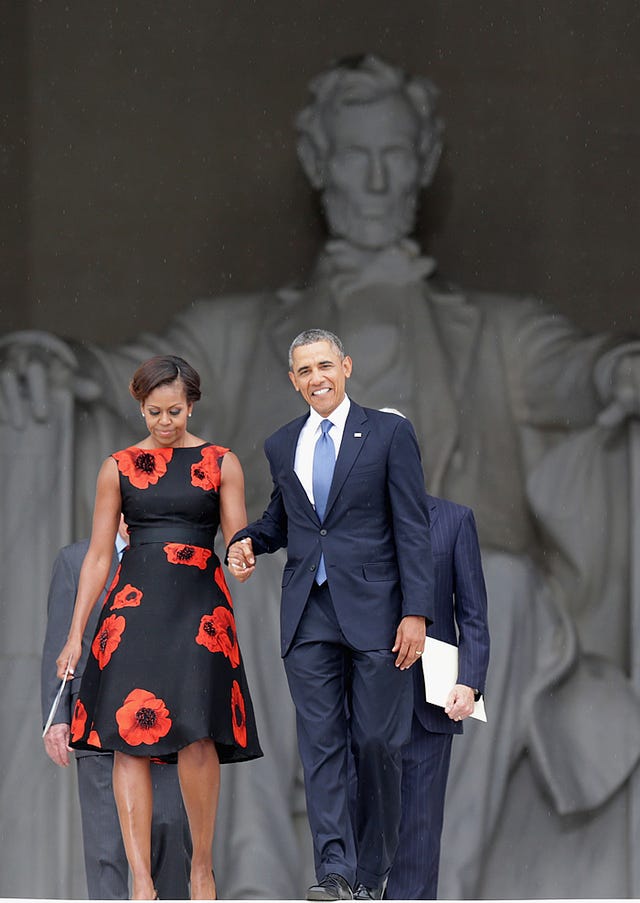 President Barack Obama and First Lady Michelle Obama arrive at the Let Freedom Ring ceremony in Washington, DC, which was held Wednesday August 28 to commemorate the 50th anniversary of Dr. Martin Luther King Jr.'s "I Have a Dream" speech and the March on Washington.