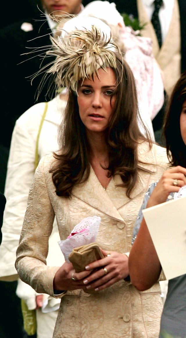 Kate dons a cream-and-brown fascinator at Laura Parker Bowles and Harry Lopes' wedding on May 6, 2006.