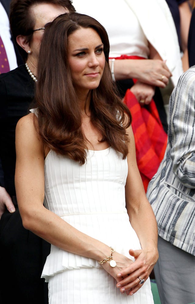 Here she is on June 27 looking stunning in white as she watches Wimbledon with hubby Prince William.