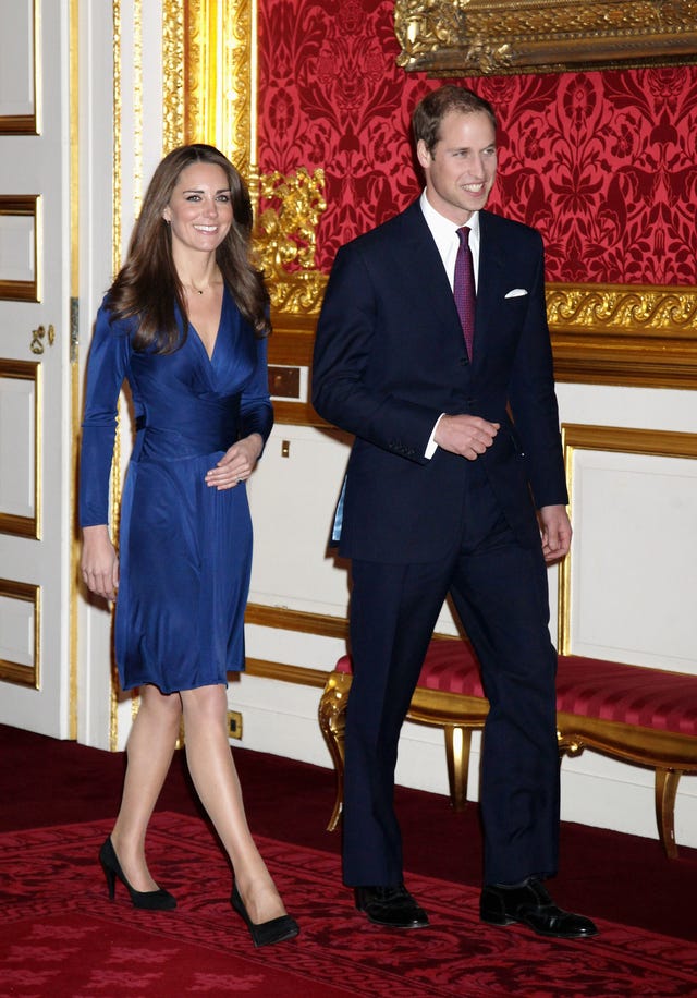 Kate chose this stunning silk sapphire dress by Issa to announce her engagement to Prince William in the State Apartments of St. James Palace on Nov.16, 2010 in London, England.