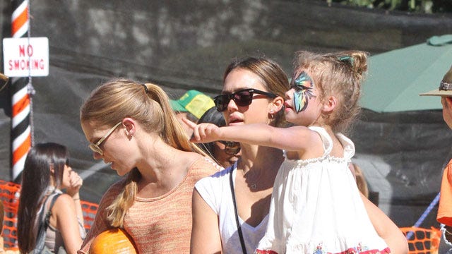 Jessica Alba picks up some pumpkins for Halloween with daughters Honor and Haven at Mr. Bones Pumpkin Patch in West Hollywood.
