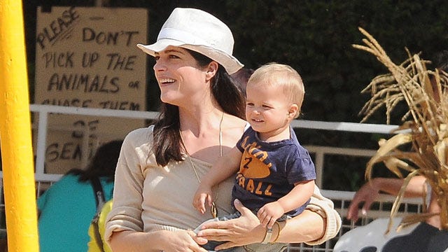 Selma Blair takes her son Arthur to the pumpkin patch in Beverly Hills, CA.