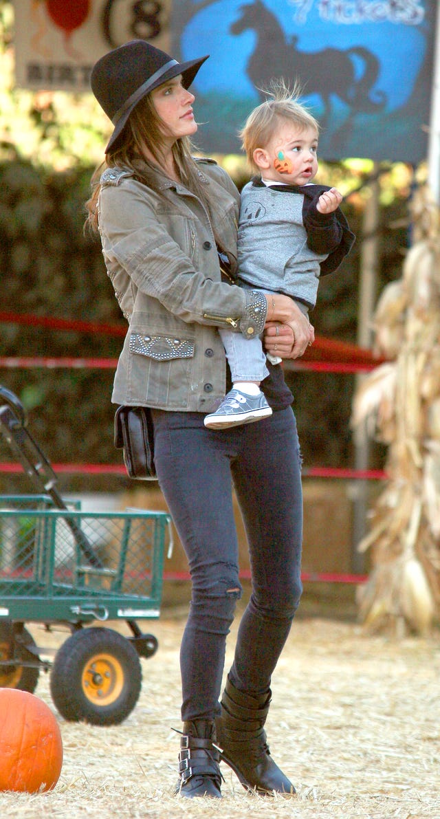 The Victoria's Secret supermodel took her 17-month-old son, Noah, to Mr. Bones Pumpkin Patch in West Hollywood on October 30.