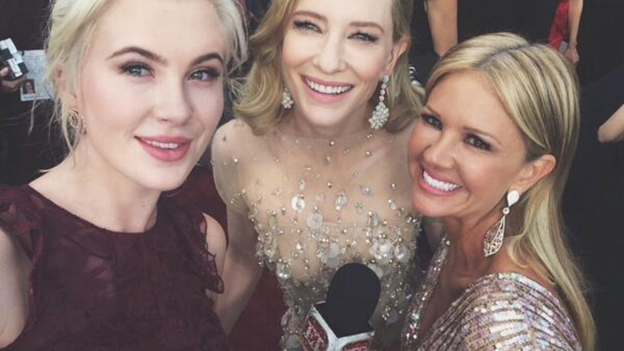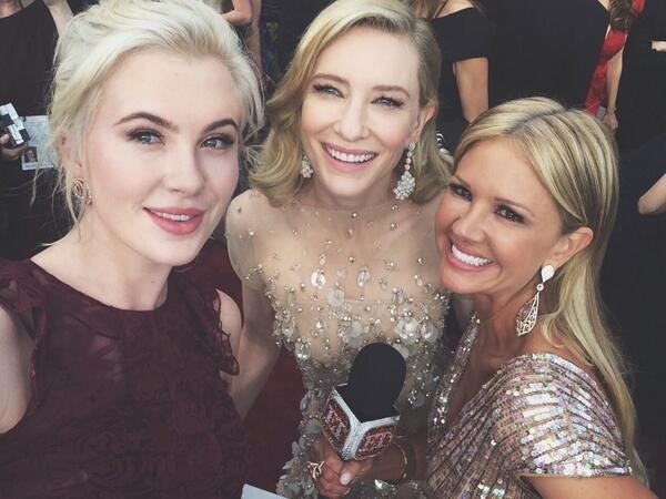 Ireland Baldwin, Cate Blanchett, and Nancy O'Dell together on the red carpet.