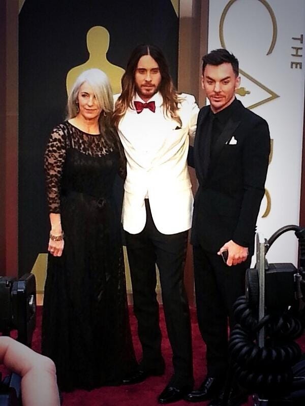 Best supporting actor nominee Jared Leto brings his family to the Oscars.