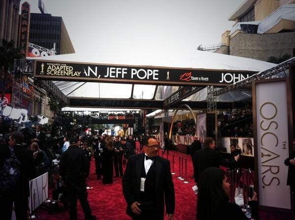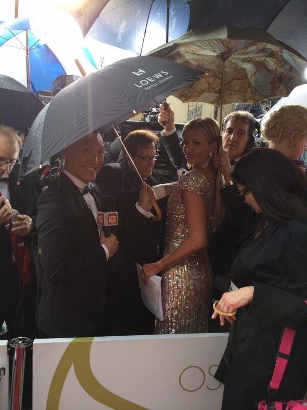 Rob Marciano and Nancy O'Dell on their way to the Oscars red carpet.
