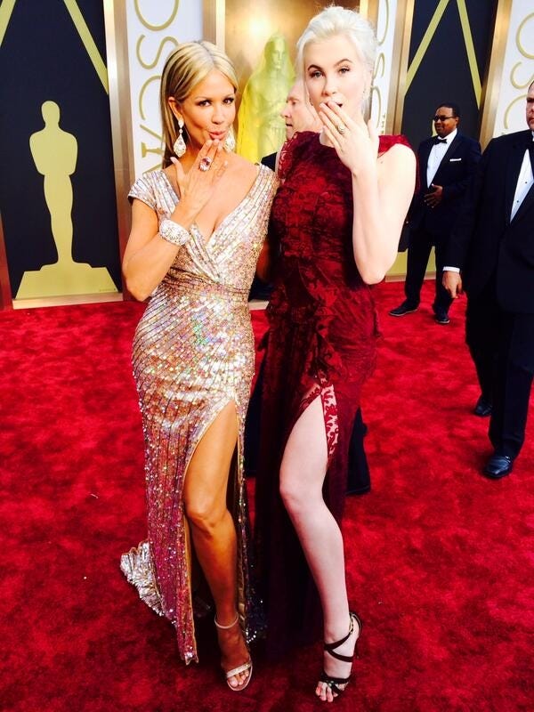 ET got social on the Oscars red carpet on Sunday night! Starting with ET's Nancy O'Dell snapping a selfie with Ireland Baldwin and Dallas Buyers Club star Jennifer Garner, click through our gallery for some fun photos taken by ET's social media team.