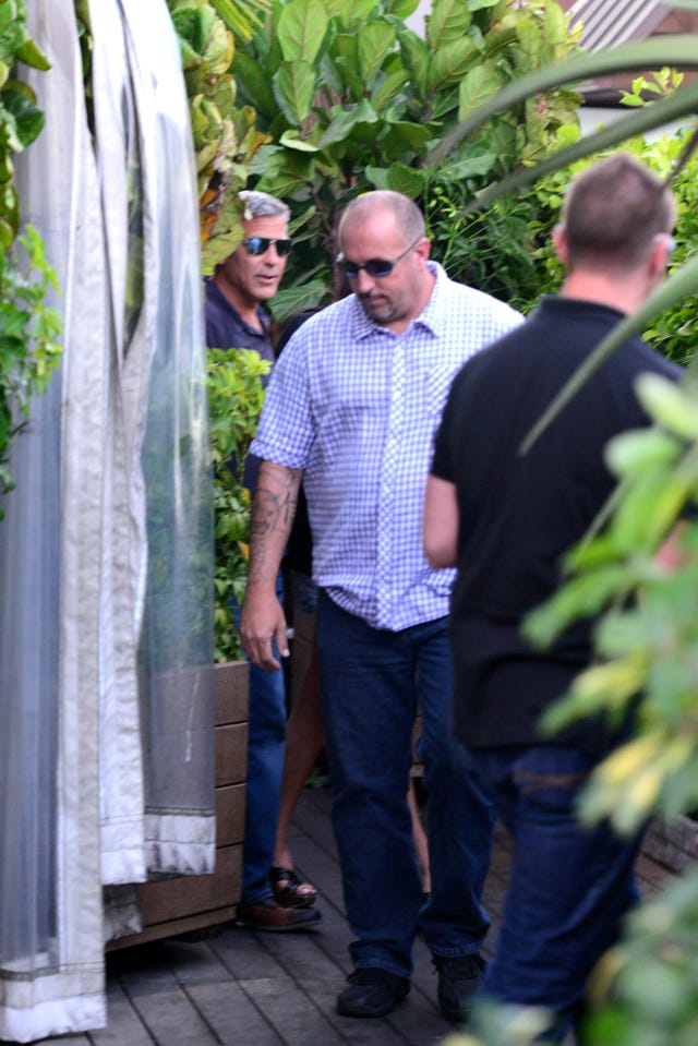 George Clooney and fiancée Amal Alamuddin enjoyed a rare public outing Saturday, April 11, 2014 in Malibu, Calif., dining at Cafe Habana with famous pals Cindy Crawford, and U2's Bono and The Edge.