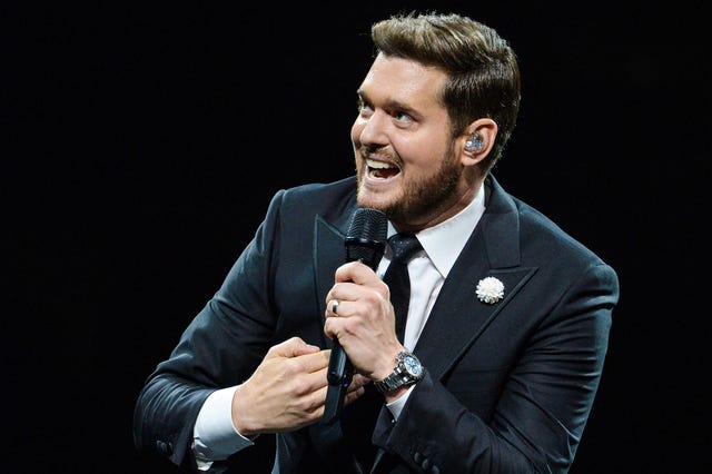 The crooner was all smiles during his performance at the O2 Arena in London on May 30.