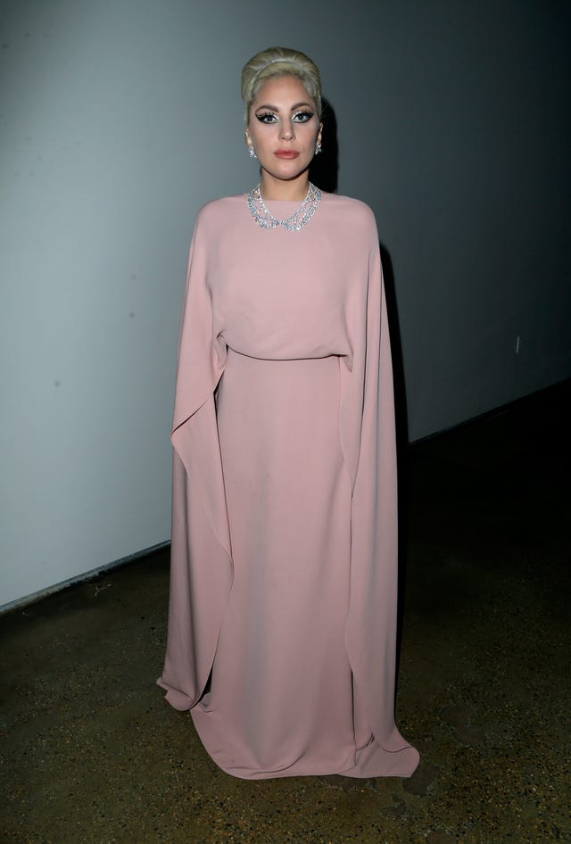 Lady Gaga deserves some applause, applause, applause! She attended the world premiere of her new movie, A Star Is Born, during the 75th Venice Film Festival in Italy on Aug. 31, where she turned heads on the red carpet in a dress fit for a princess. The 32-year-old songstress wowed in a gorgeous, blush pink Valentino gown from the brand's Fall 2018 Couture collection. Adorned with feathers, the floor-length dress featured multiple layers and a flattering strapless cut. The "Million Reasons" singer kept the rest of her look simple, opting for a polished, pulled-back bun that showed off her stunning Chopard earrings.