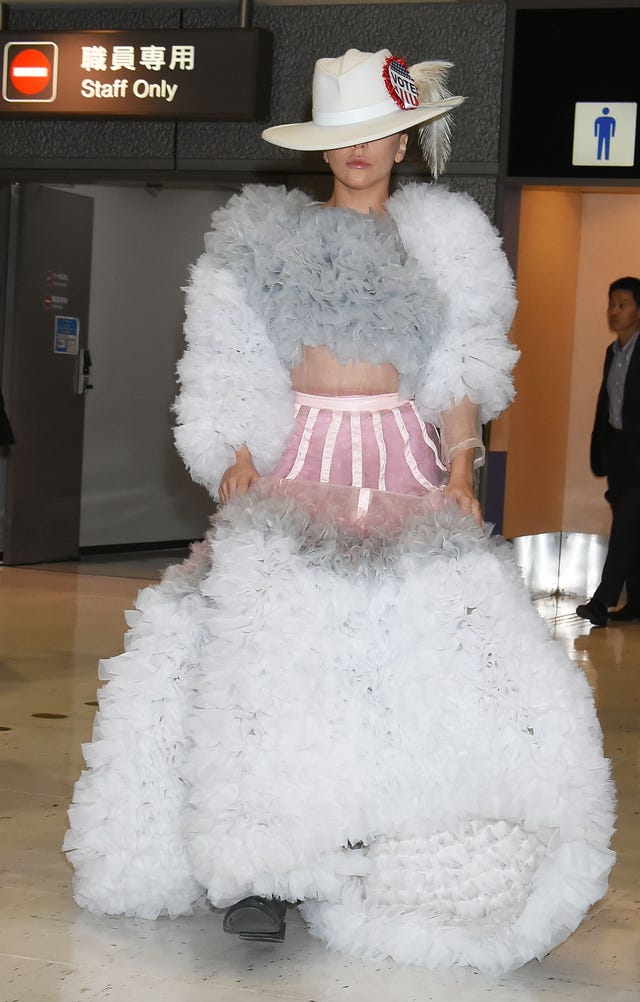It was tulle, tulle and more tulle as Gaga strode through the airport in Tokyo, Japan, on Nov. 6, 2016.