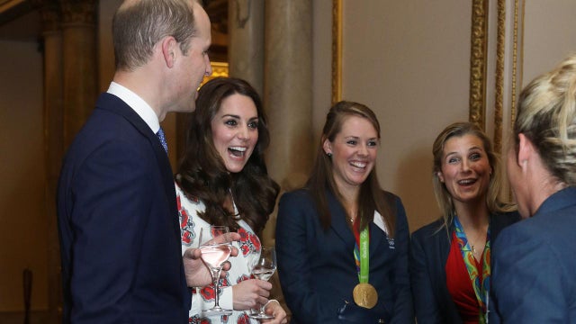 William and Kate joined Prince Harry at a reception honoring Olympic and Paralympic medalists at Buckingham Palace on Oct. 18, 2016.